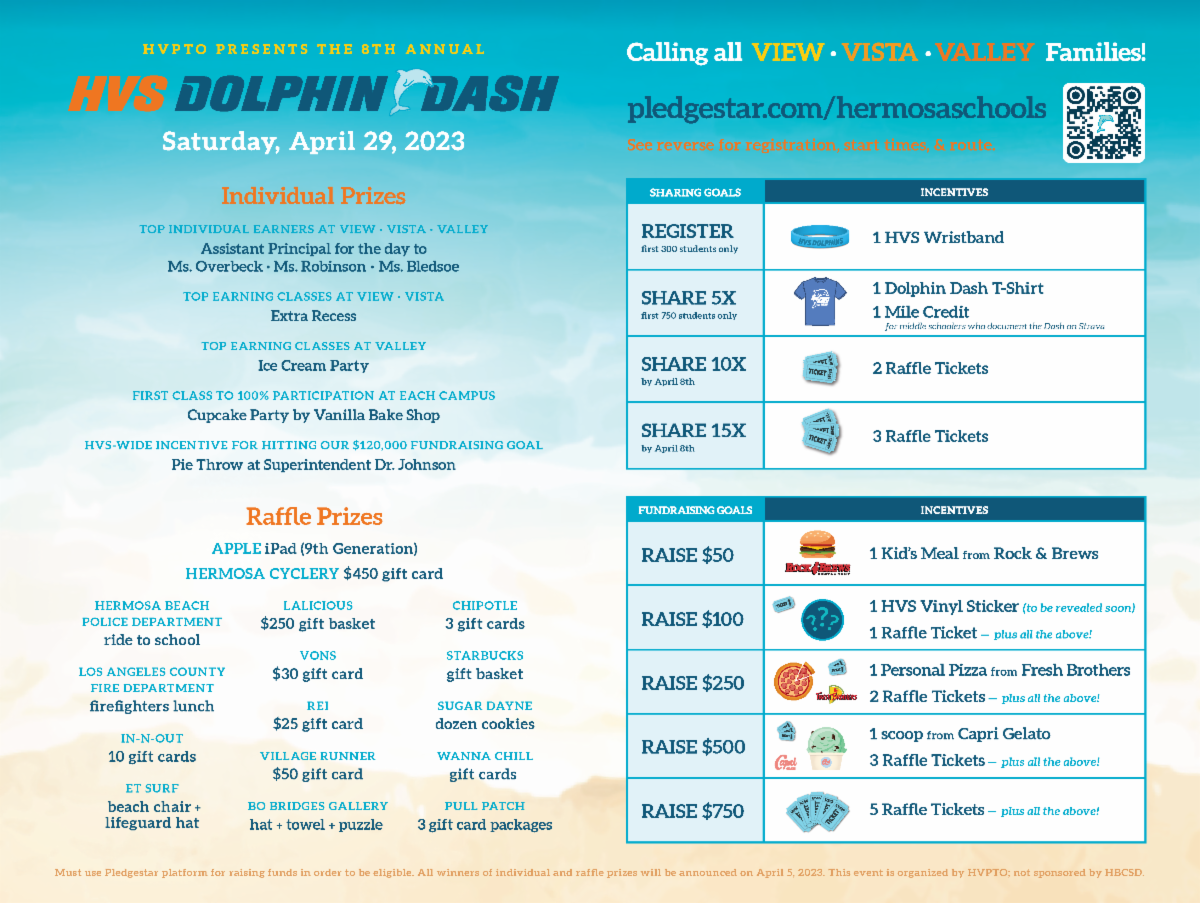 We are excited to partner with the City of Hermosa Beach again this year to host the Dolphin Dash at the Hermosa Beach Pier as our students run the Strand!