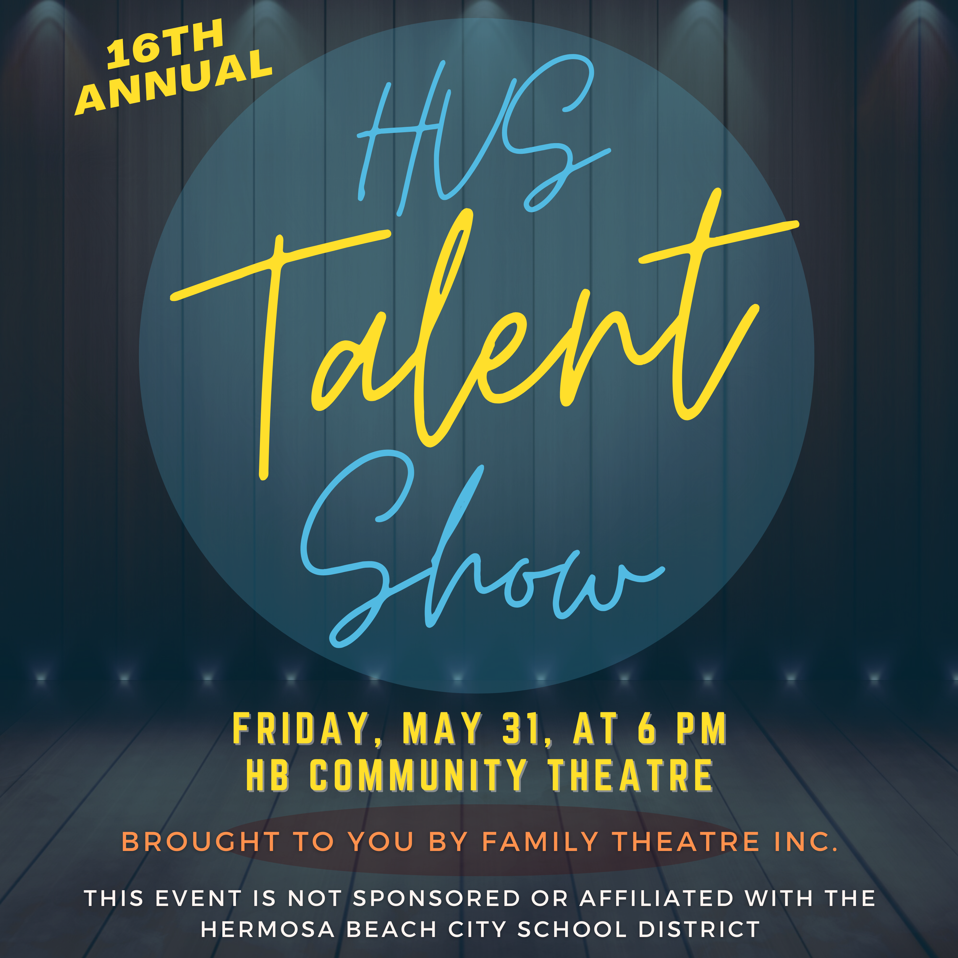 The 16th Annual HVS Talent Show is set for Friday, May 31, at 6:00 PM, at the Hermosa Beach Community Theatre.