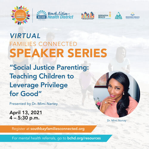The next SBFC Speaker Series event “Social Justice Parenting: Teaching Children to Leverage Privilege for Good” will take place virtually on April 13, 2021 from 4-5:30pm.