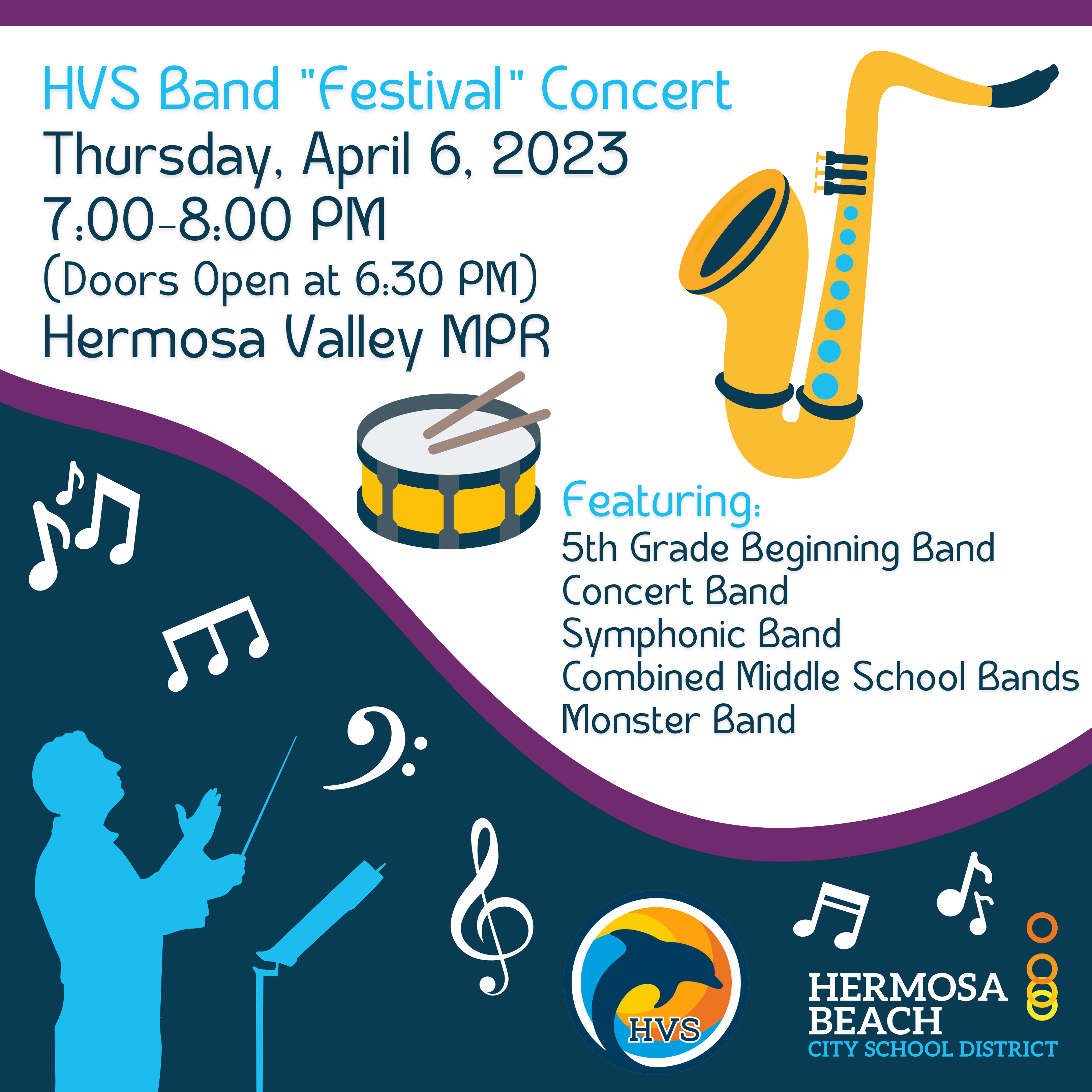 Join us at the HVS Band “Festival” Concert on Thursday, April 6, from 7:00-8:00 PM, in the Valley MPR.
