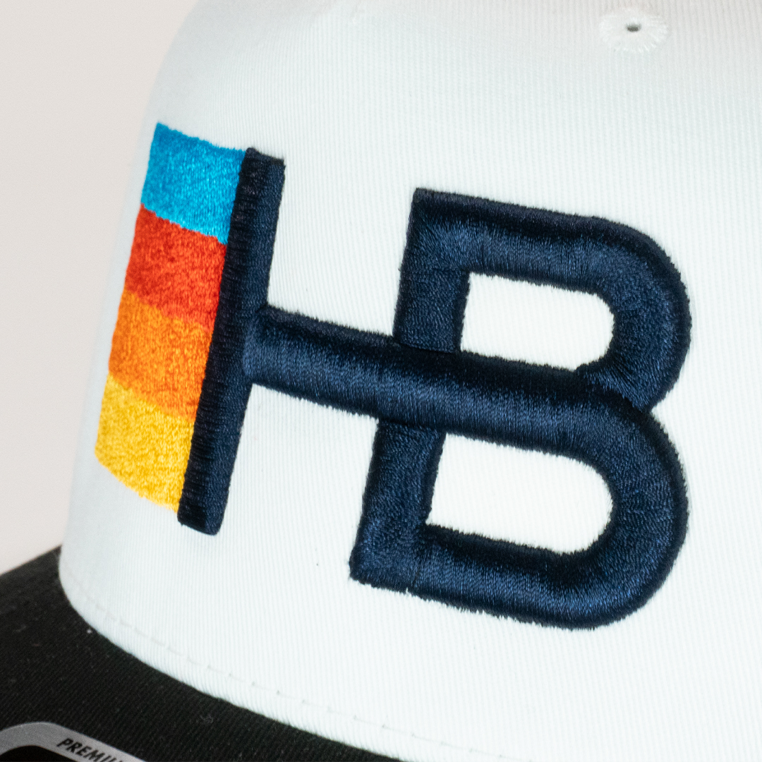 Sharp, simple, and full of HB coastal pride – WHITE CAP WITH BLACK BILL